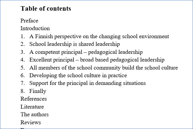 “Tapio Lahtero and Mikko Salonen uncover a more fundamental reason for the success: it has been institutionalized into the culture of learning through the careful development of school principals as guardians and leaders of cultures” - Michael Fullan, Professor Emeritus, University of Toronto, Canada.